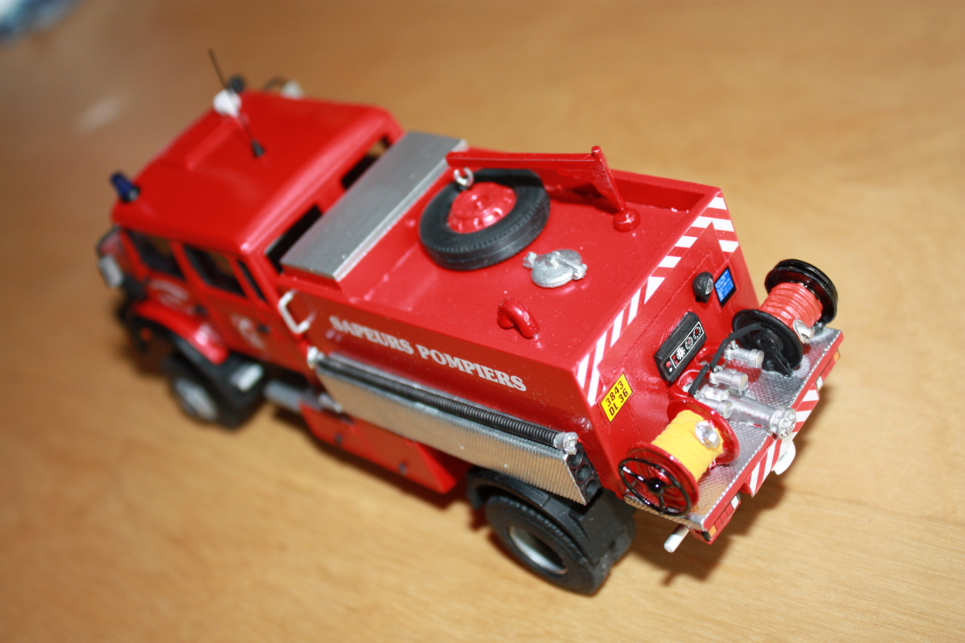 Magnifique réalisation mais il manque le dévidoirs a l'arrière :poucesup: :jadore: :jadore: Est il encore dispo au catalogue MMT ? Pour l'histoire du véhicule il a été acquis par le CSP Valençay en 1986 en tant que CCI 8000 équipé par les ateliers du SDIS dont l'équipement sera refait 2 fois jusqu'en 1997 ou il fut reconditionné par camiva en FPTR 5000 toujours en service a l'heure actuelle ;)