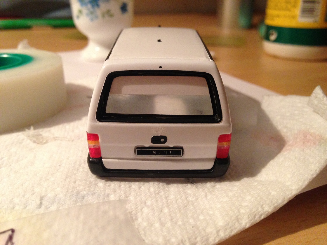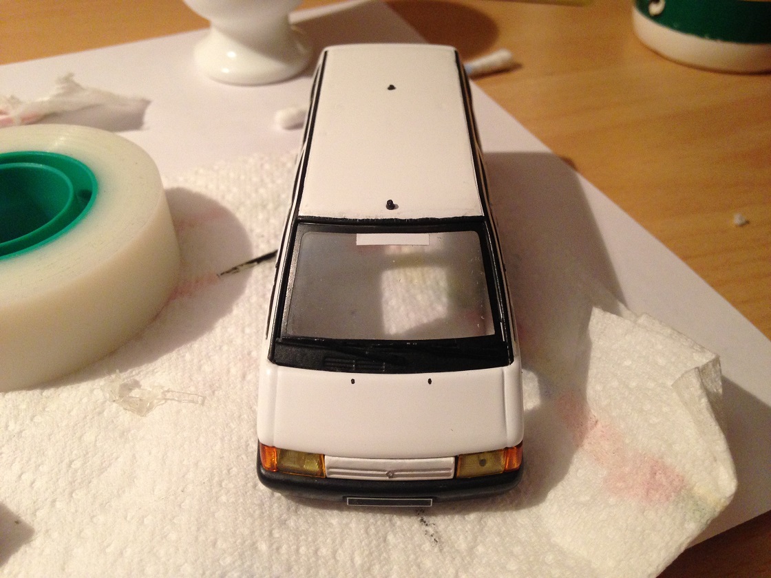 Les vitres ont été recollées et une bande blanche a été ajoutée sur le pare-brise et la vitre arrière.