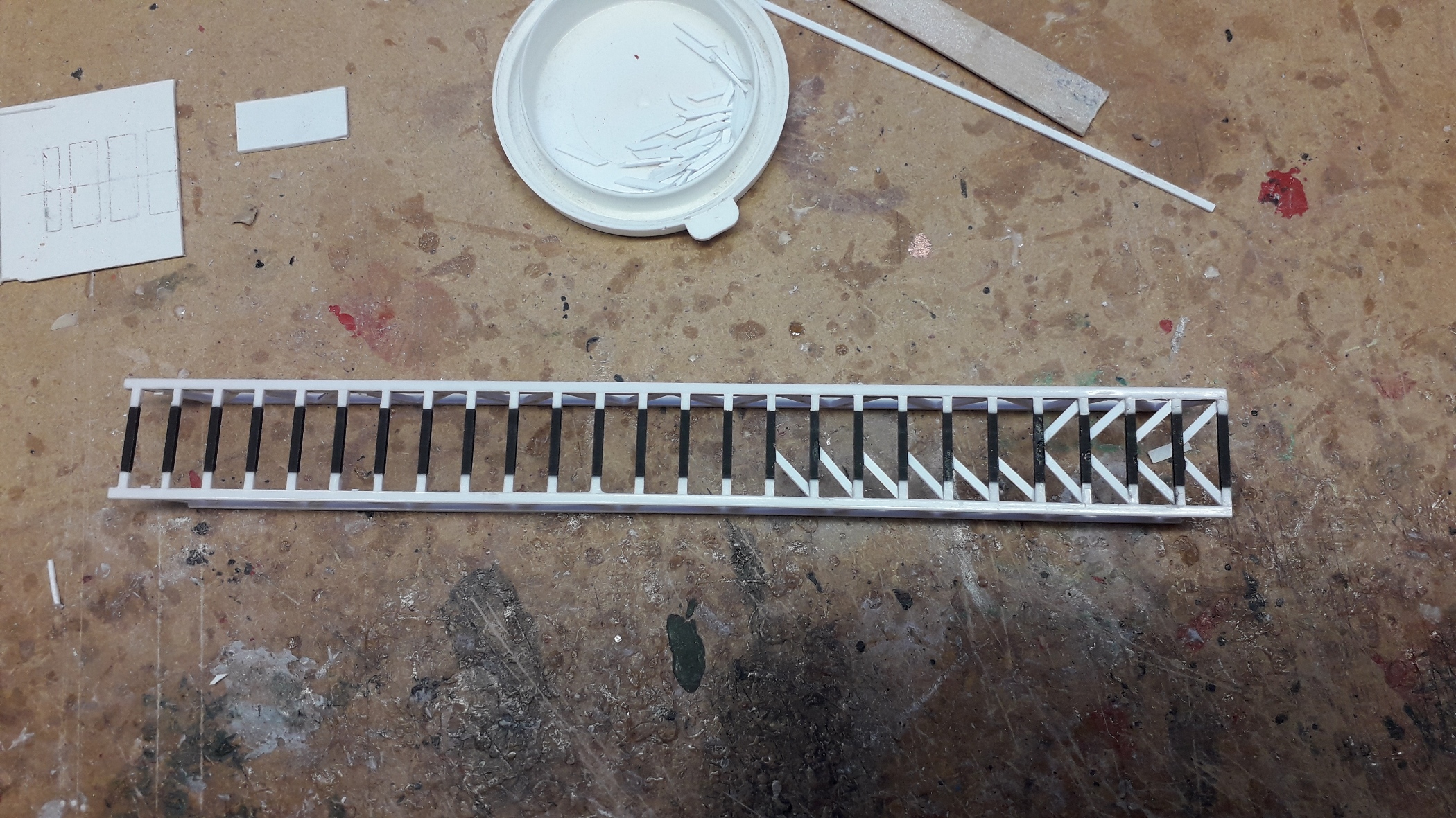 Alors là, je me suis fourré je ne sais pas où... :oops: :oops: :oops: :oops: Pour que les plans de l'échelle soient conformes, il faut reprendre le premier plan et renforcer les échelons... J'ai commencé hier, sauf que le premier étant fini, je me suis aperçu que je m'étais trompé de sens... :twisted: :twisted: :twisted: :twisted: Donc tout à refaire aujourd'hui... Puis début du 2ème...