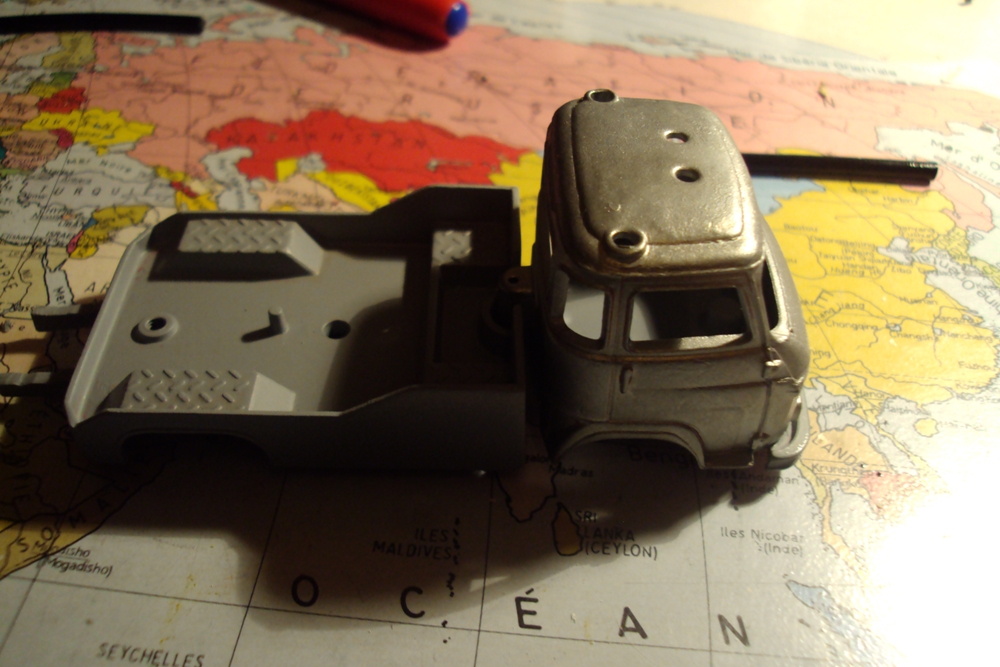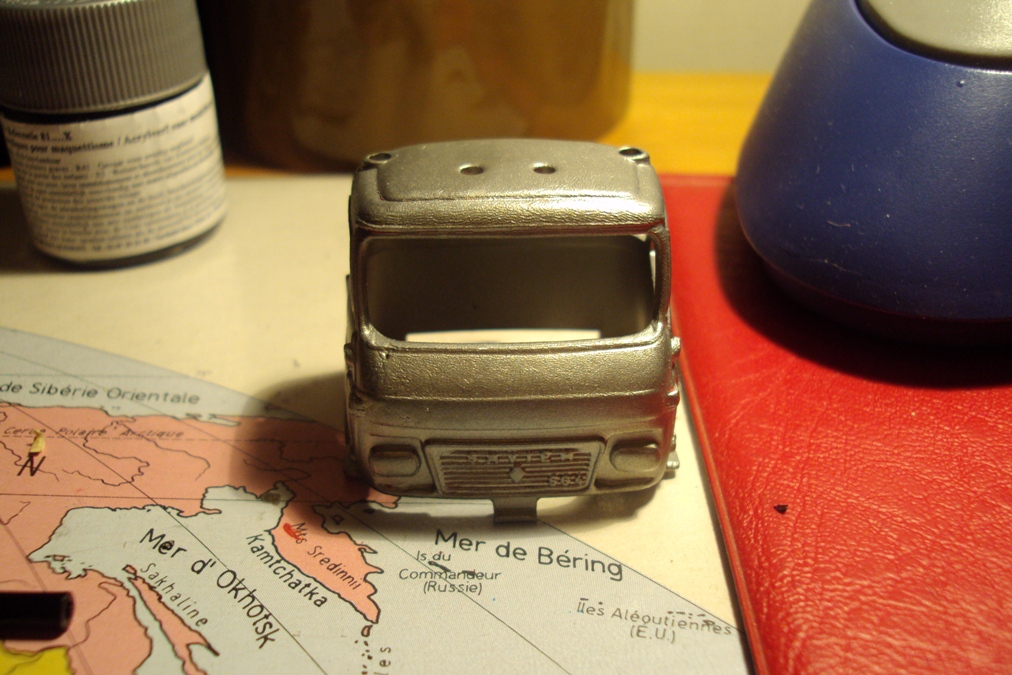 sinon pour en revenir au saviem j'ai renforcé la caisse avec du mastic époxy et bouché quelques trous.