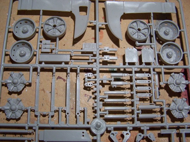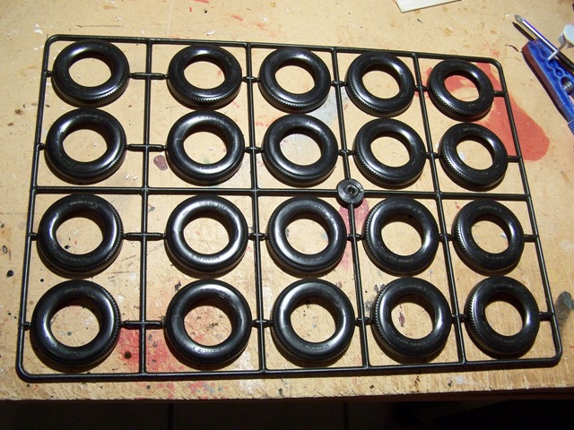 Mais aussi et surtout des roues AV et AR jumelées au 1:24 (c'est d'ailleurs pour cela que j'ai choisi cette échelle, sinon çà demandait à créer des pneus "maison"), car çà m'ennuierait d'être obligé d'acheter un modèle de chez Heller ou Airfix à 30€ juste pour 6 roues...
