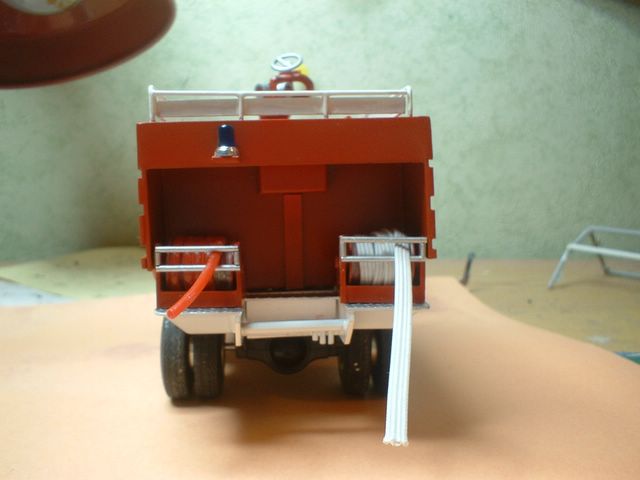 que ce soit pour ta claie de portage ou ton dévidoir de 45 tu peux utiliser de l'élastique, il en existe de différentes largeurs il te suffit de calculer ton 45 au 1/43 ! de plus tu peux le peindre à la couleur que tu veux , que ce soit un tuyau ou vieux tu peux le peindre en diluant la peinture et en faisant un lavis noir pour renforcer les nuances entre les différents passages de tuyaux lorsqu'ils sont chevauchés .