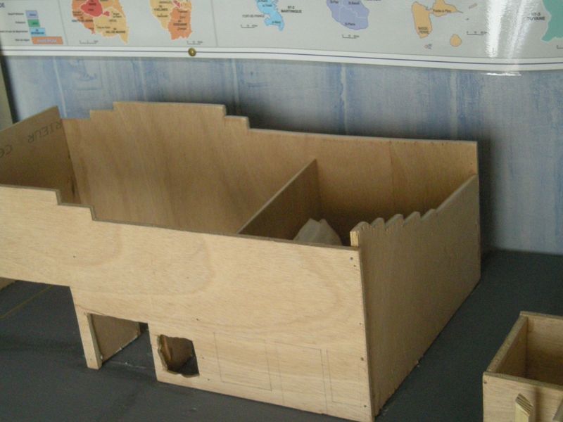 Ensuite découpage des grosse pièces (mur et façades) sur une planche de contre planquer