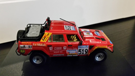 Aujourd'hui, je vous propose la Lamborghini LM2 du Dakar 1988 avec les décals de ma fabrication. Pour plus de précisions, j'ai participé à ce Dakar, c'était mon second dans l'organisation (radio au PC Course) Mon dernier Dakar en 2000 (dans l'avion de recherche) et mon dernier rallye en 2016 (contrôleur de passage) dans l'Africa Eco Race.