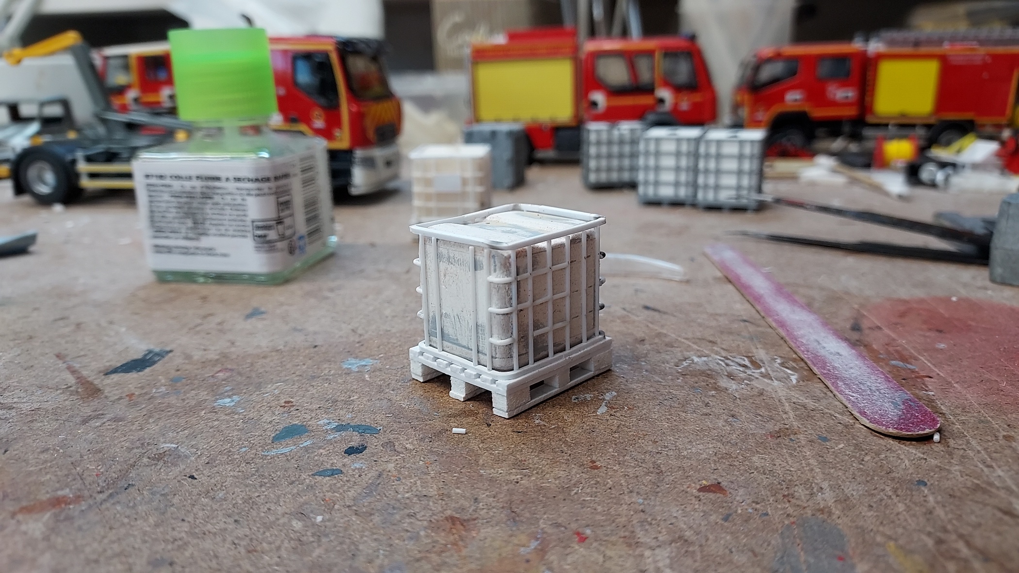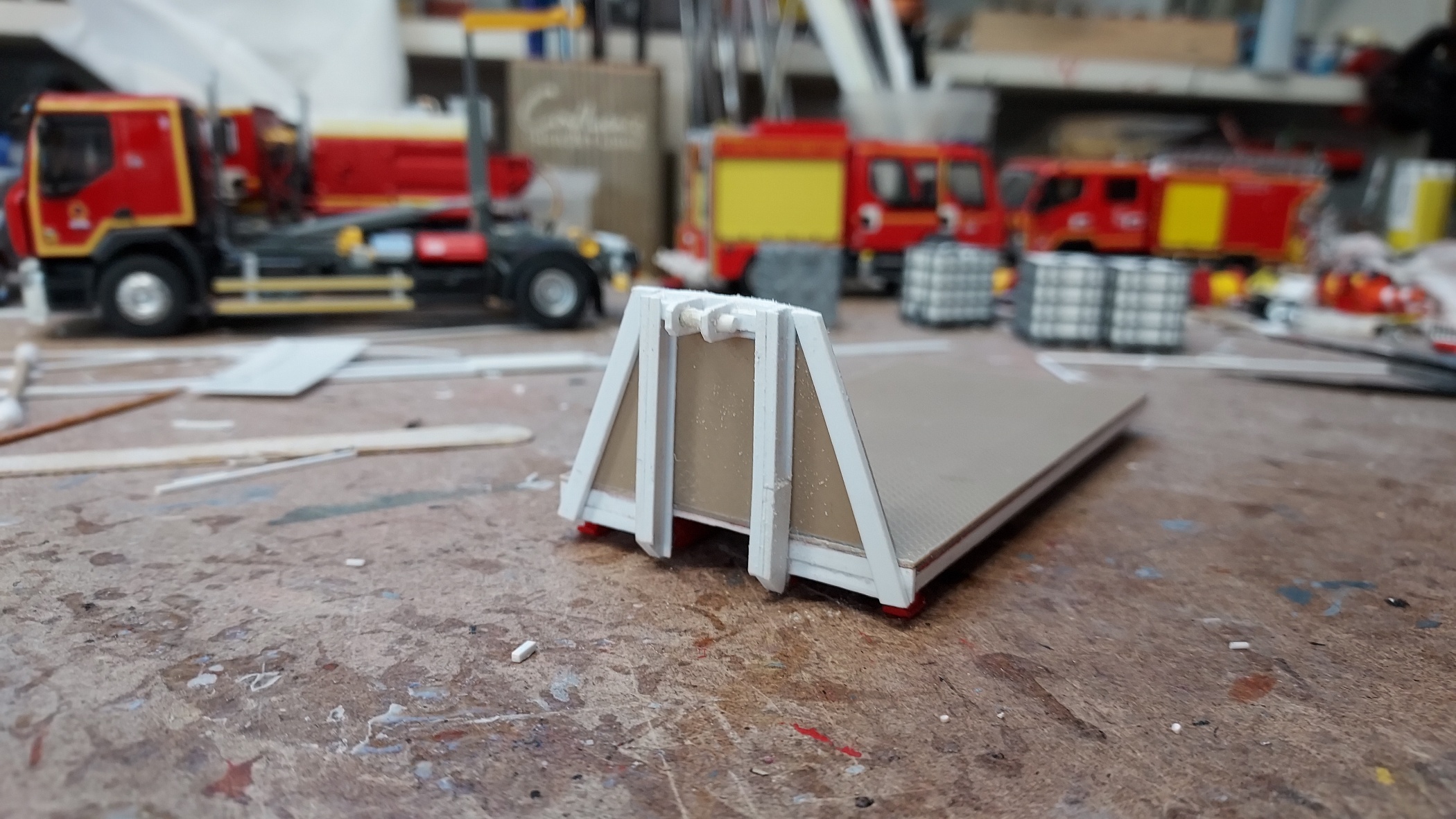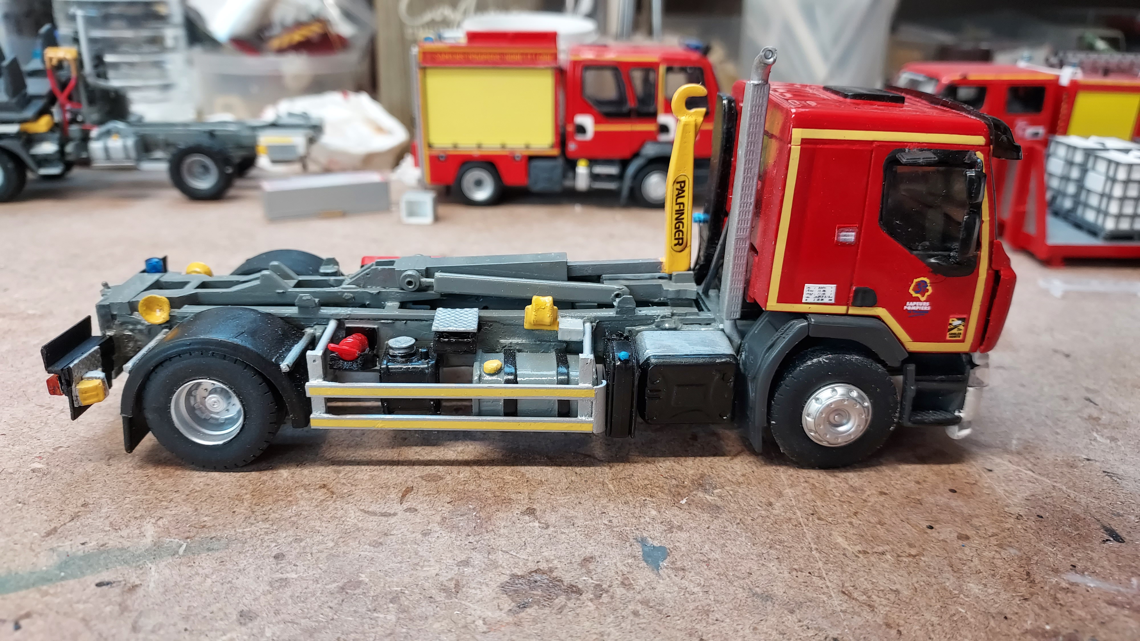 création et pose des décalcs, du gyro arriére , prise maréchal. La rampe est en confection ainsi que l'éclairage arrière cabine. il me reste la barre anti encastrement a réaliser et j'arriverais au but...