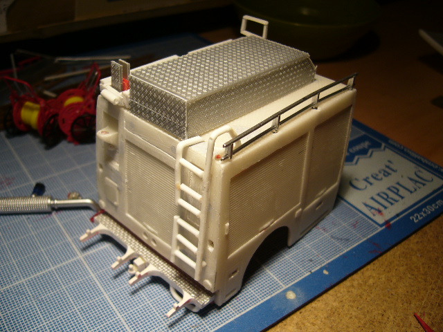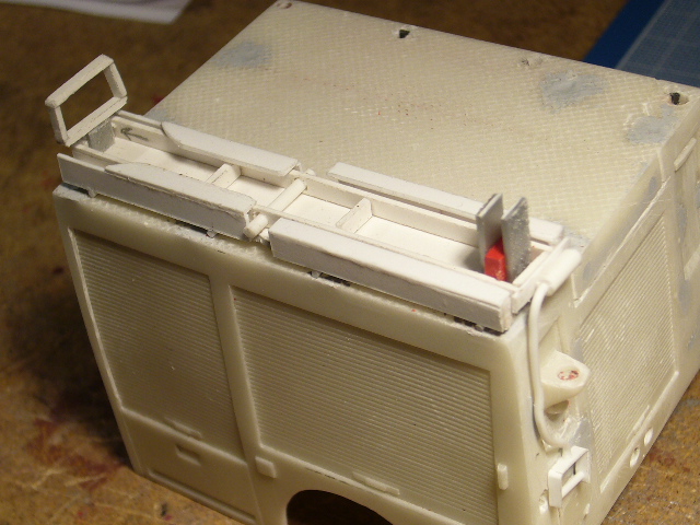 La suite, la voilà!! Les dévidoirs sont des Pons, de chez Eligor Fichier(s) joint(s): Création de l'échelle d'accès au toit: Fichier(s) joint(s): Fichier(s) joint(s): Puis vient le coffre de toit: Fichier(s) joint(s):