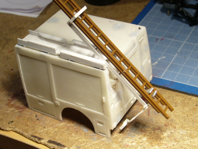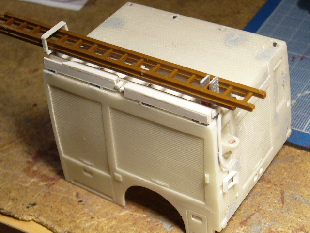 Et le clou du jour, c'est la création du porte-échelles coulissant et pivotant, fonctionnel!
