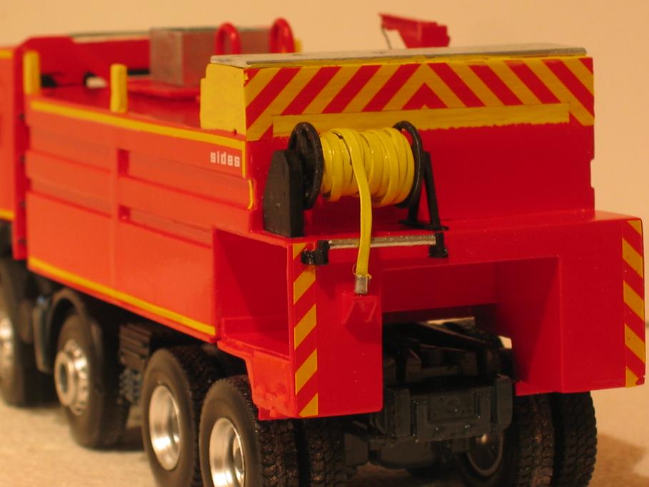mise en peinture du coffre supèrieur pose du couvercle de coffre mise en place de la grue et débuts de pose des décals.
