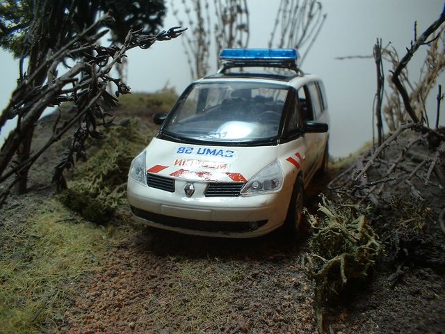 voici une reproduction de la VLM1 du SMUR Nevers (58). La base est un Espace 4 de Universal Hobbies. Démontage, décapage, apprêt, peinture et enfin décals maison. Le voici sur un petit dio pour CCF ... mais j'avais envie alors voilà !!!!